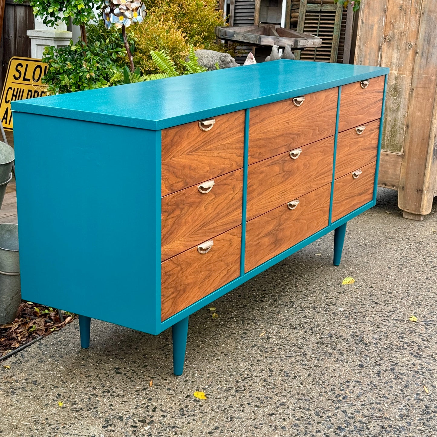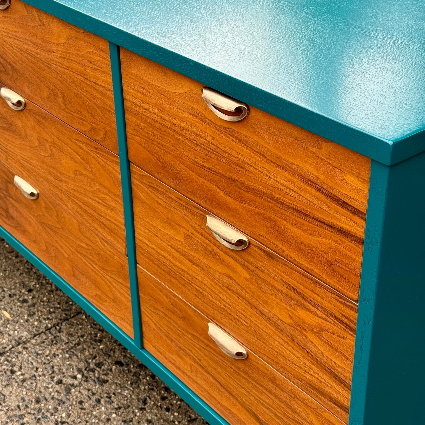 Mid Century Walnut & Peacock Blue Lacquered Dresser