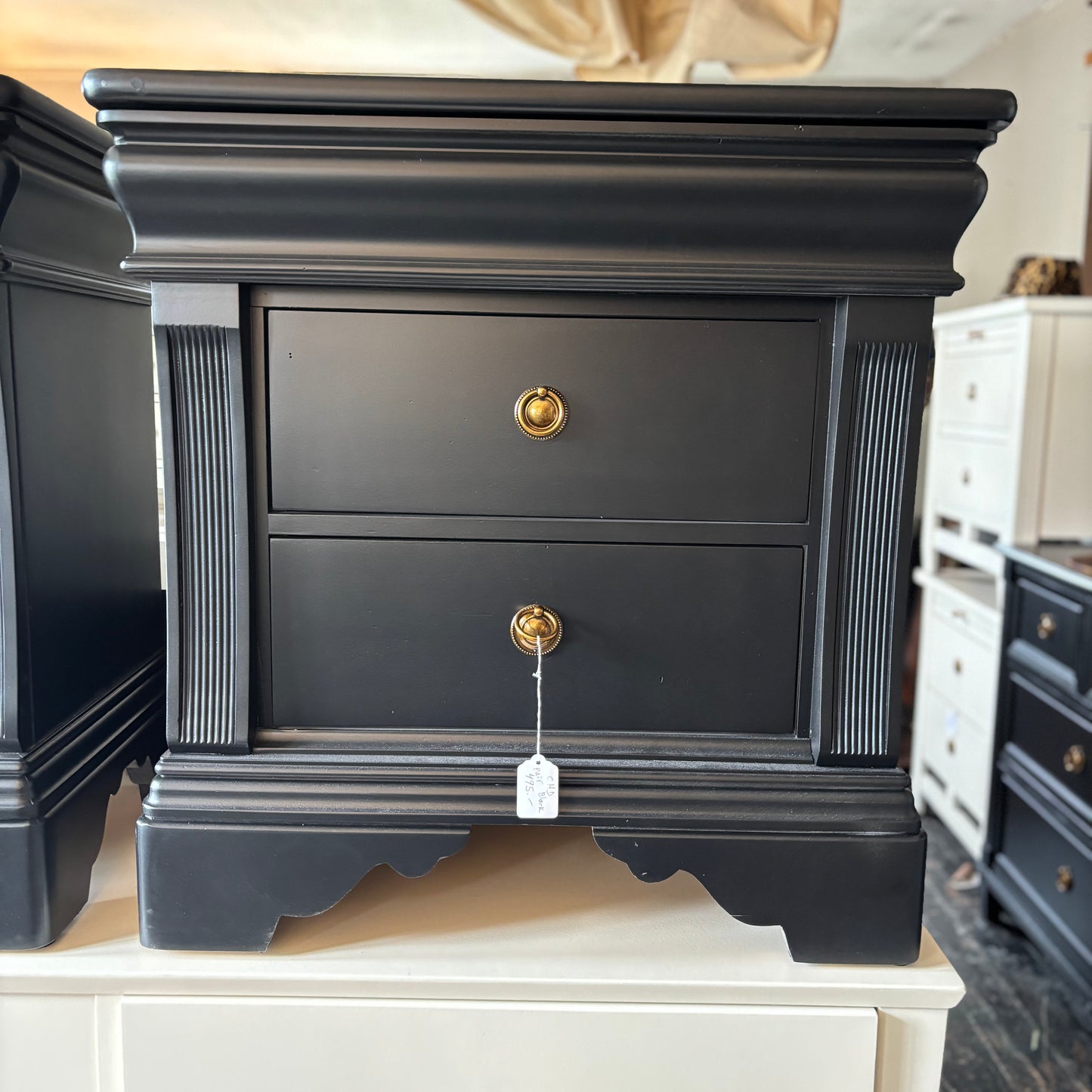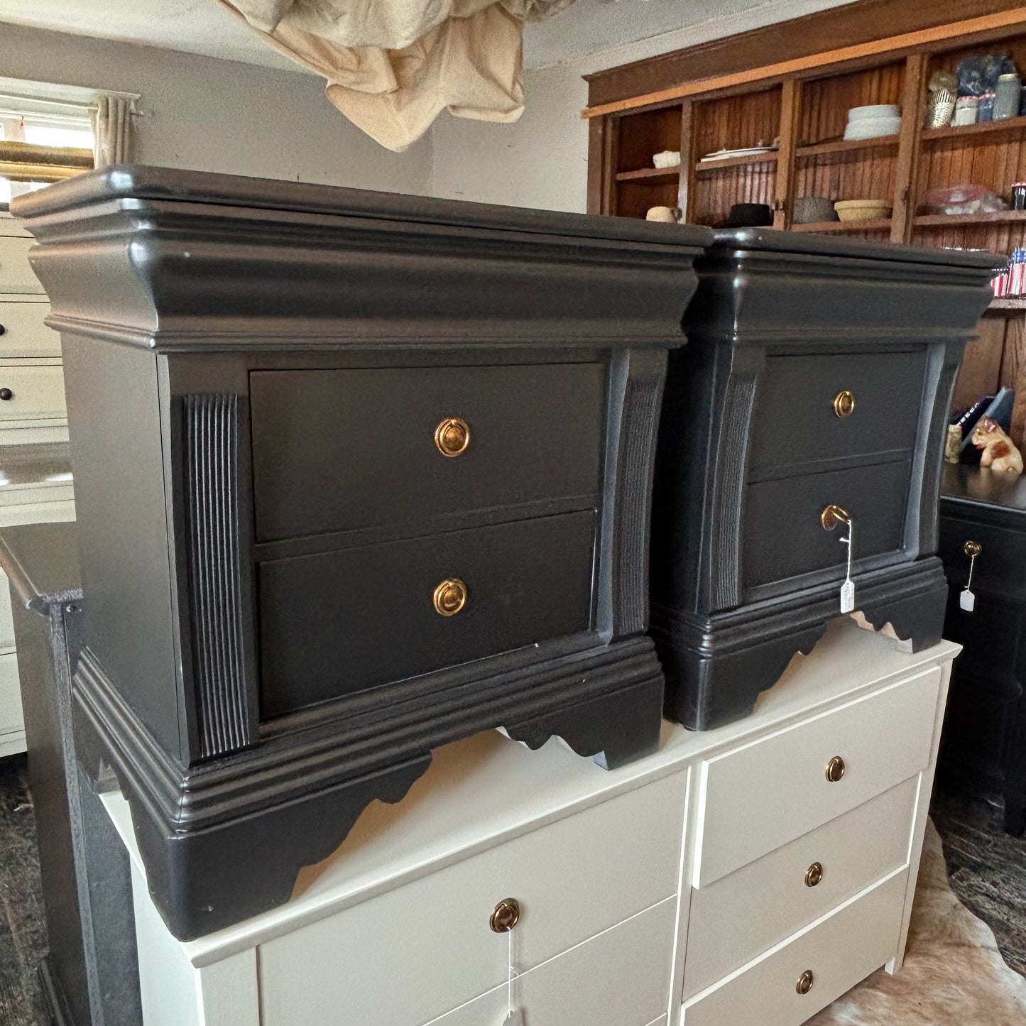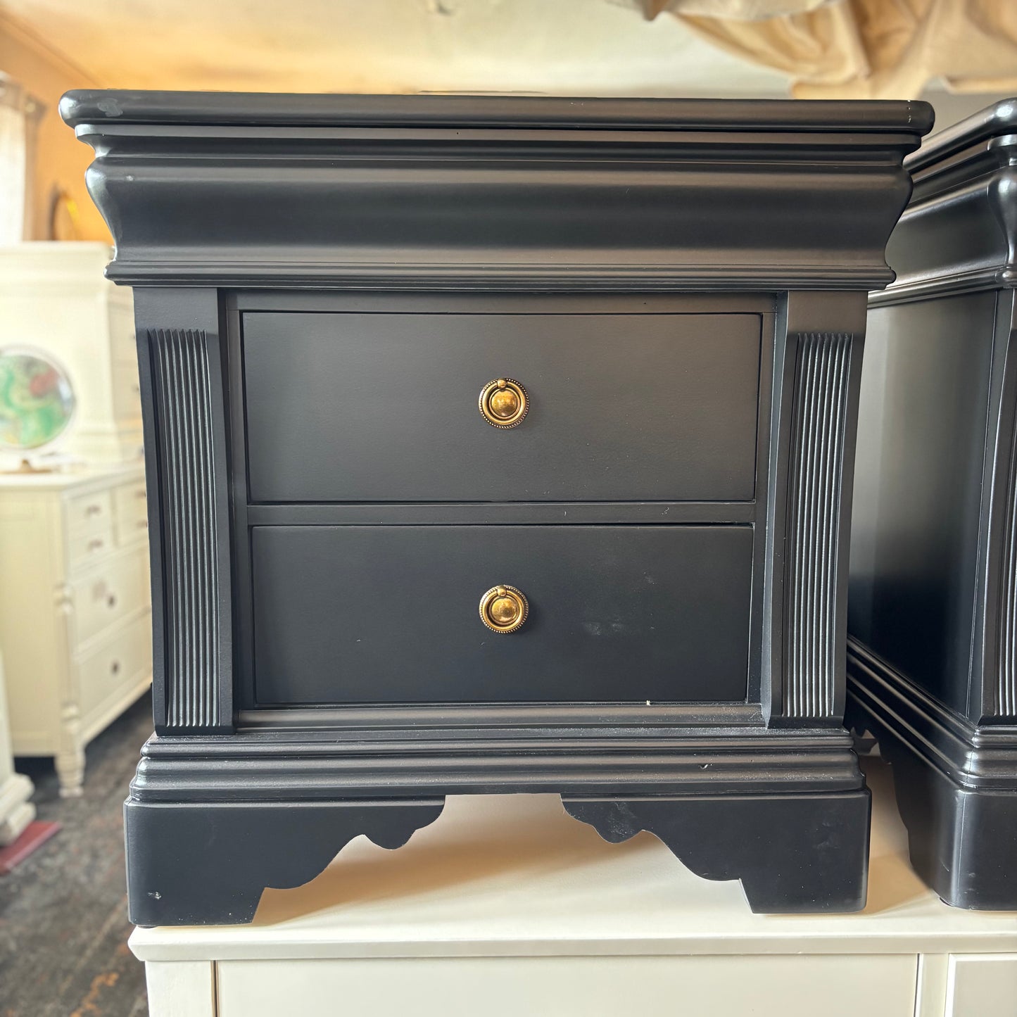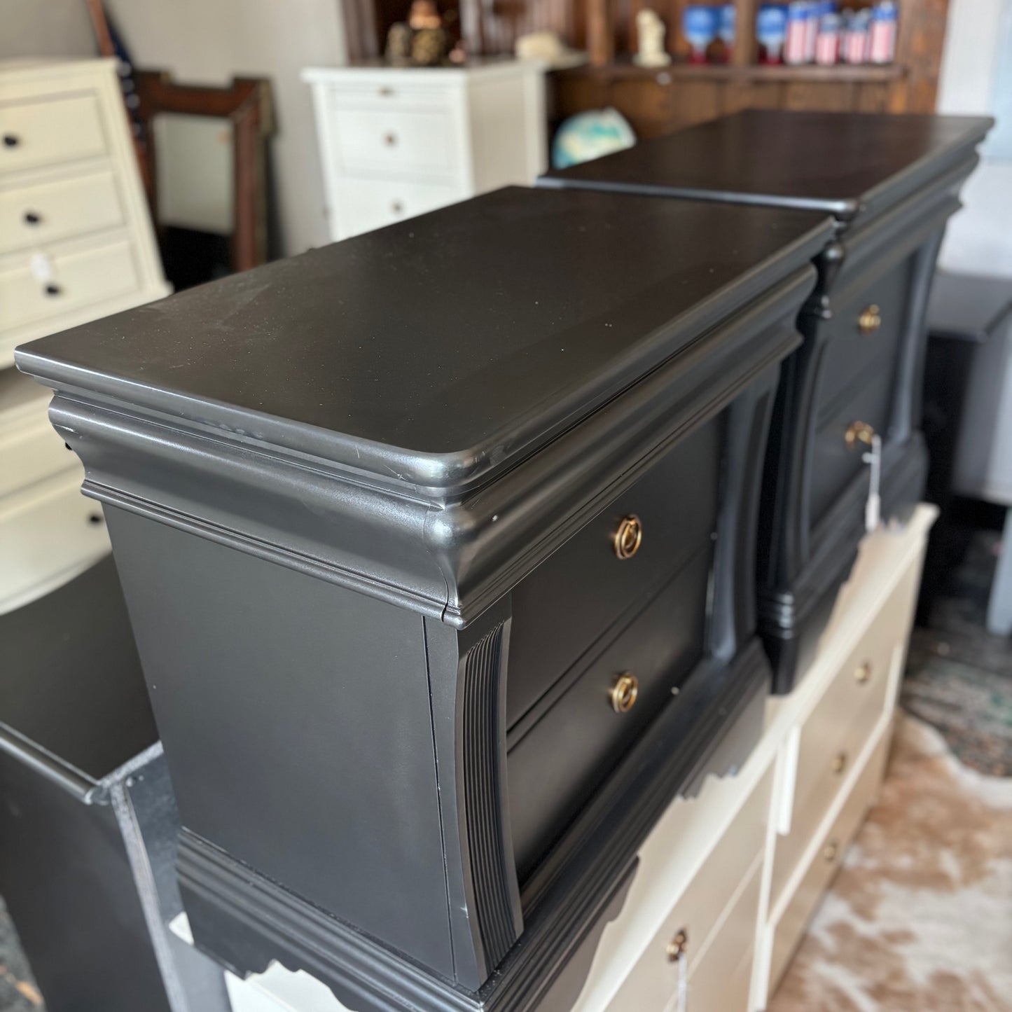 Check out this pair of elegant black nightstands from Barrel & Stone Interiors! Featuring a crispy black finish and 3 smooth gliding drawers! Love the stately vibe of these nightstands, and how the top drawer blends seamlessly with the design of the piece!
