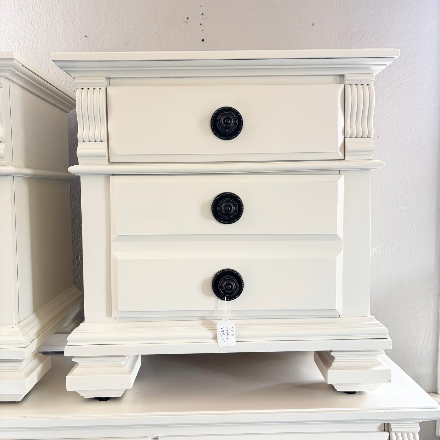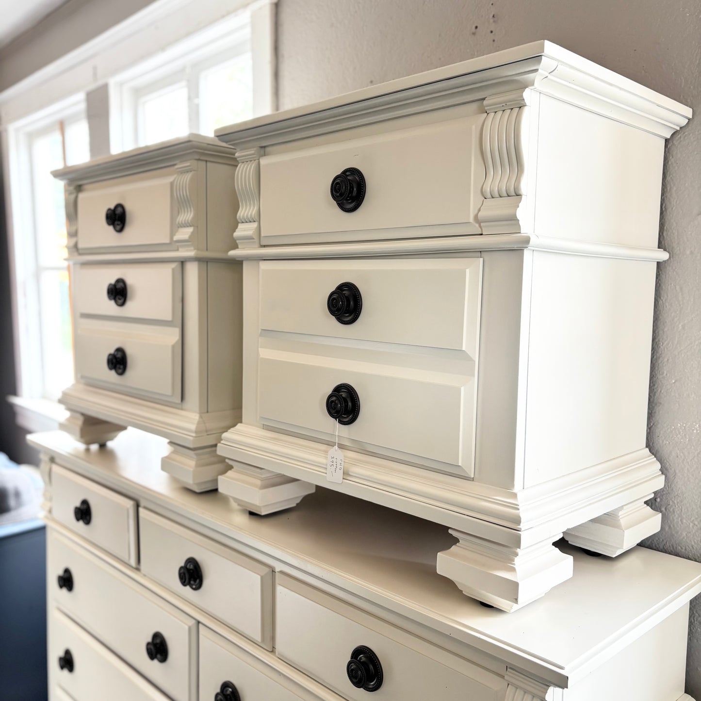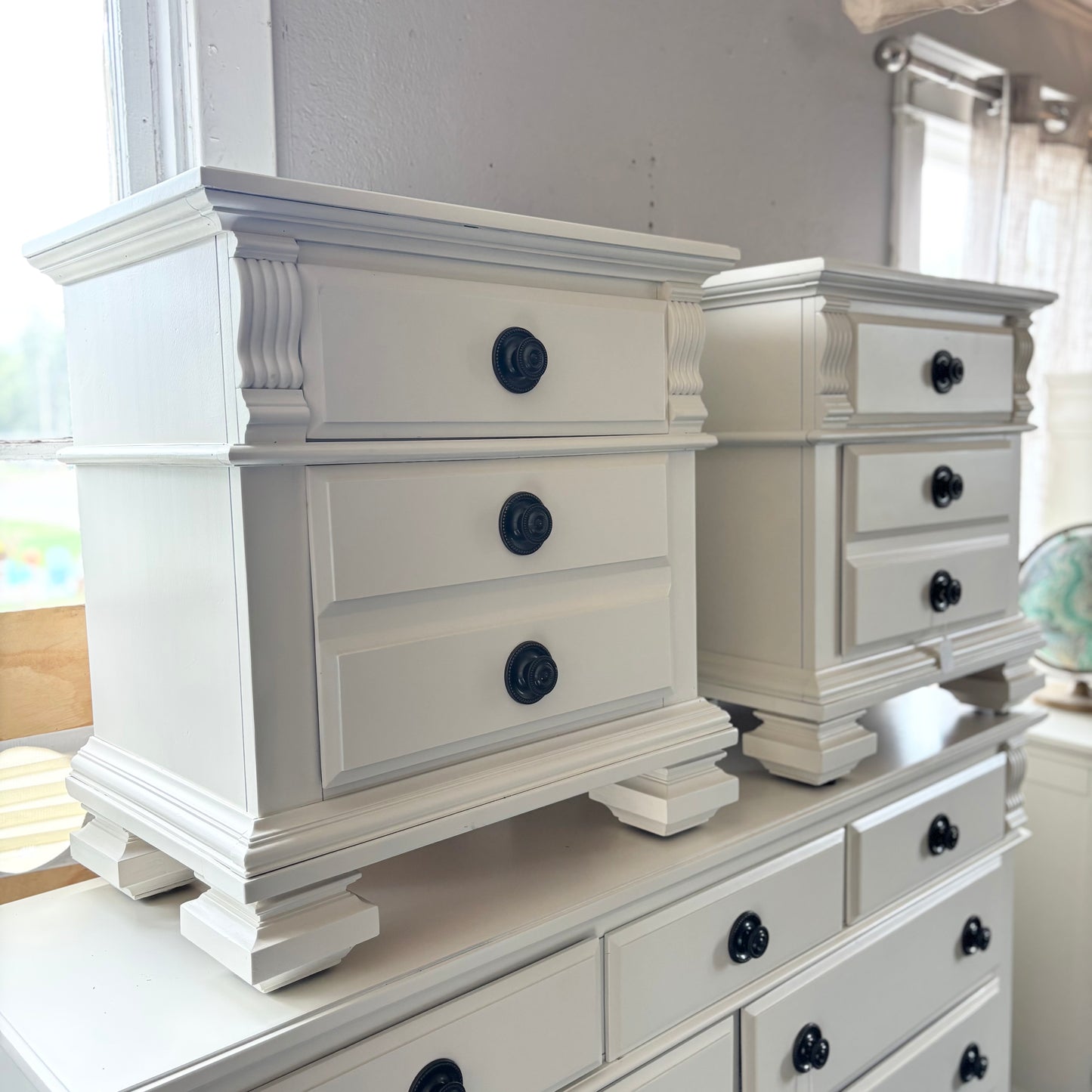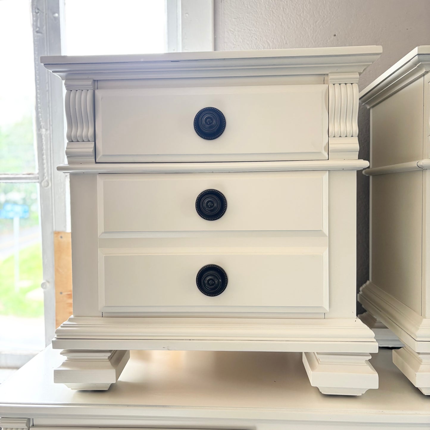 Introducing another pair of perfect cream nightstands from Barrel & Stone Interiors! Featuring three drawers (which all work great) for storage and a versatile cream finish which can complement a wide variety of room designs. Hardware and finish matches perfectly with the 9-Drawer Cream Dresser!