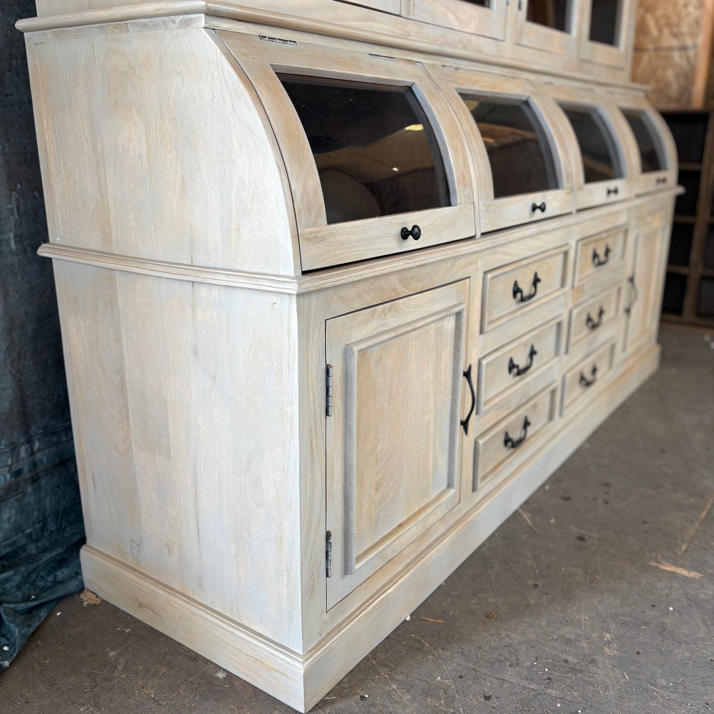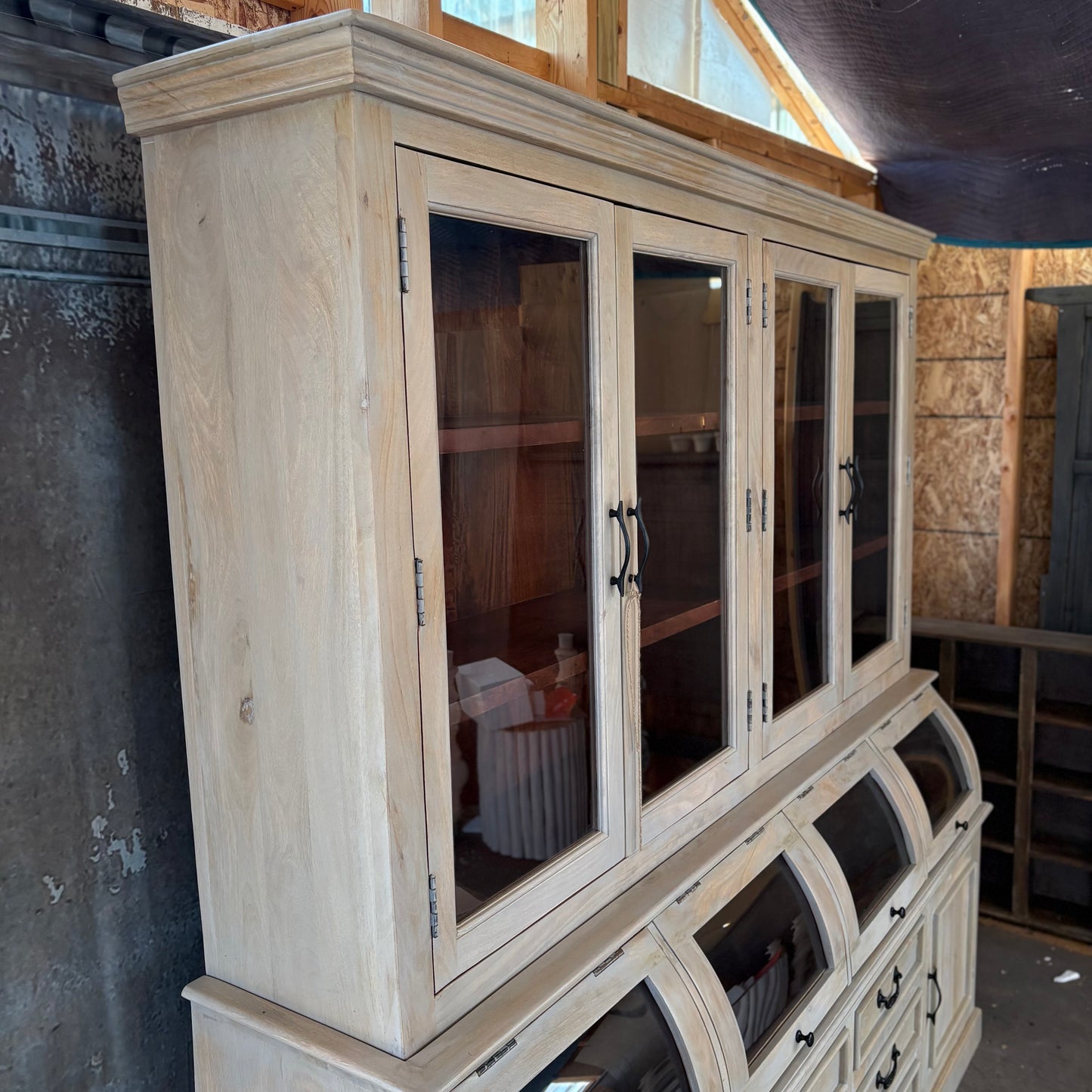 Step into the realm of opulent storage with this amazing Bread Cabinet! Made from rich teak wood and featuring tonssss of space for storage. Whether it's heirlooms, cherished books, or whimsical curios, let them reside in luxury within this grand display piece! Comes in two pieces!