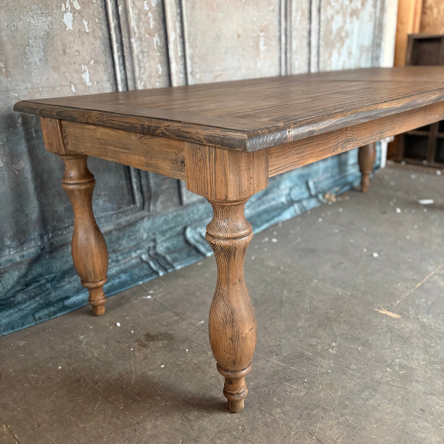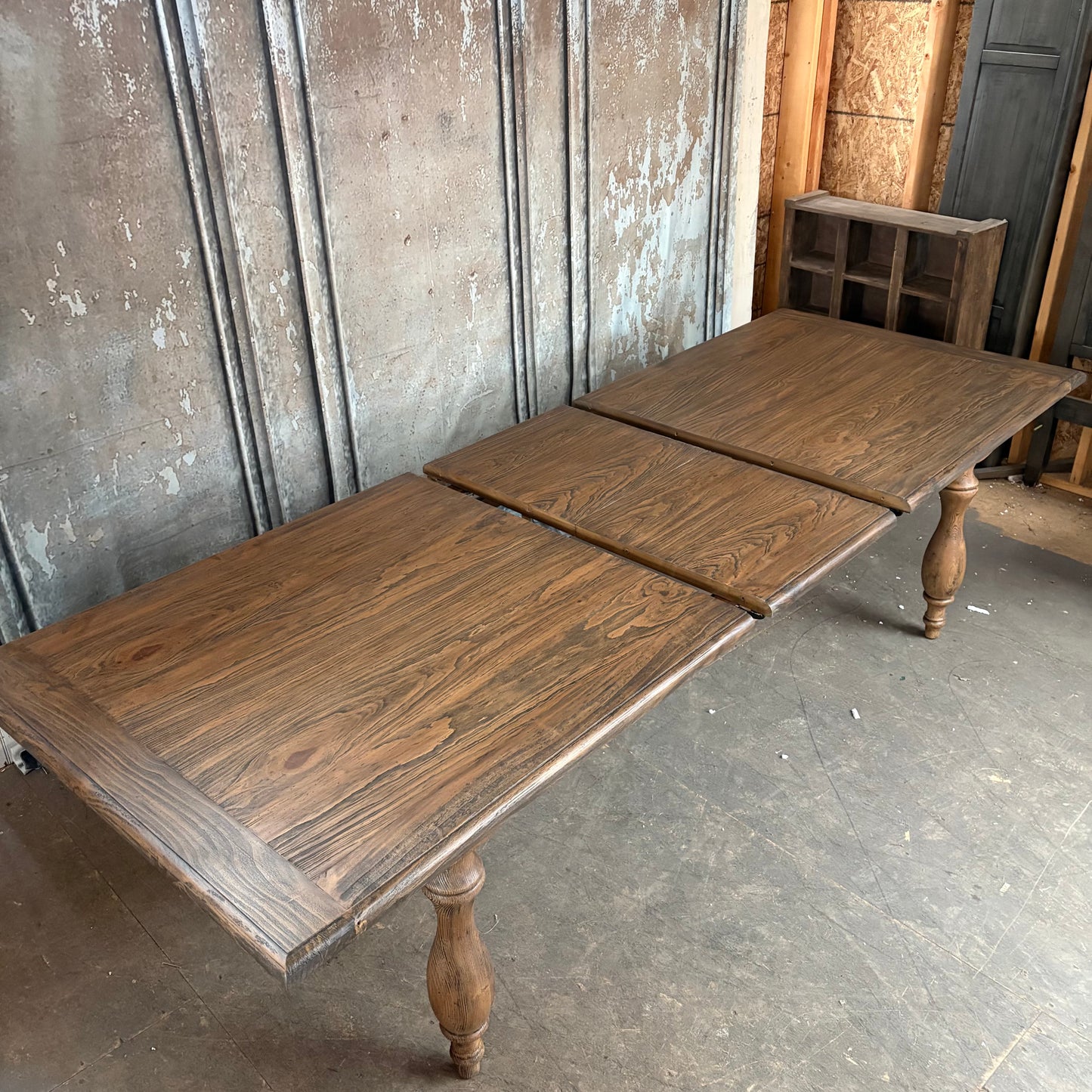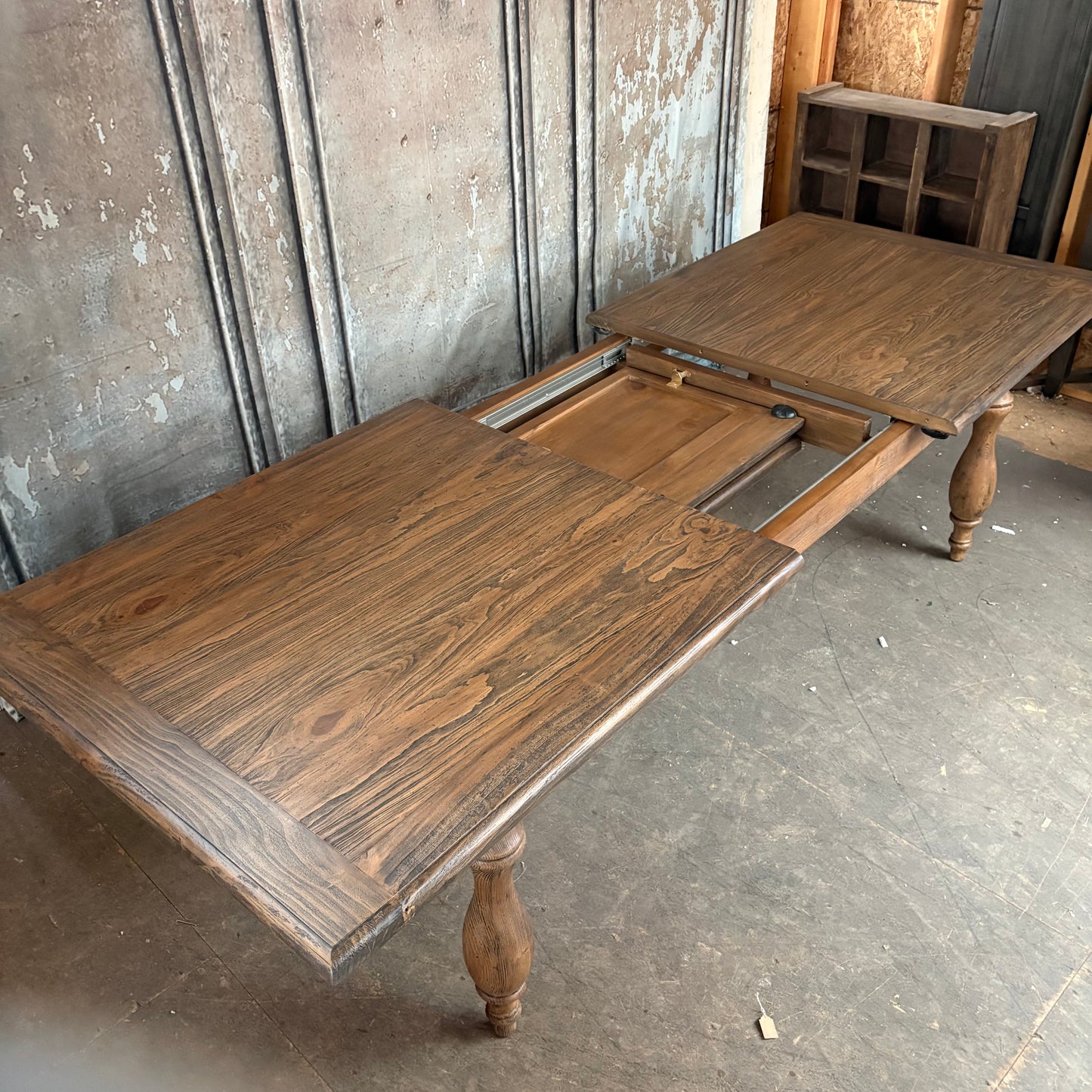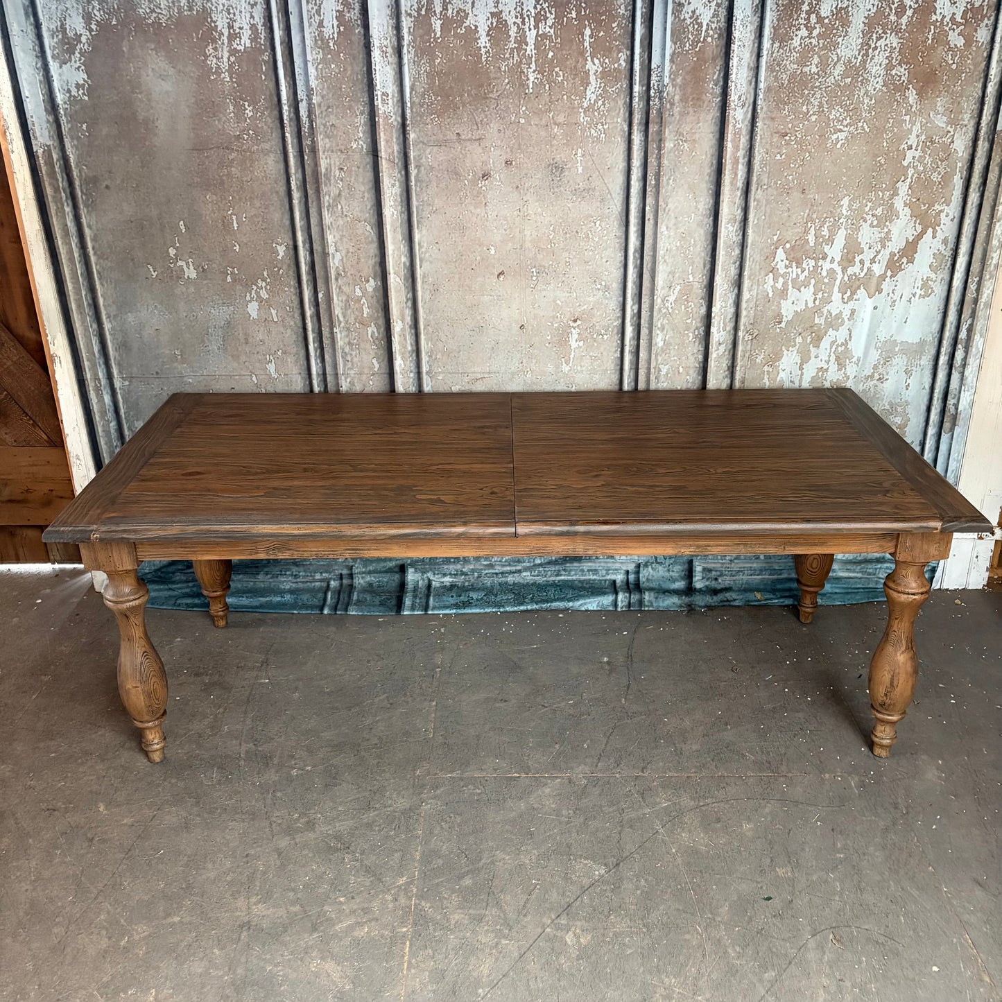 The beloved Biloxi hath finally returned, in all its glory!!! This fan favorite 86-inch reclaimed pine beauty has exquisite baluster legs and a hidden secret! It not only exudes rustic charm but also comes with built-in leaves that effortlessly extend it to a majestic 106 inches, making it perfect for those unforgettable family feasts!