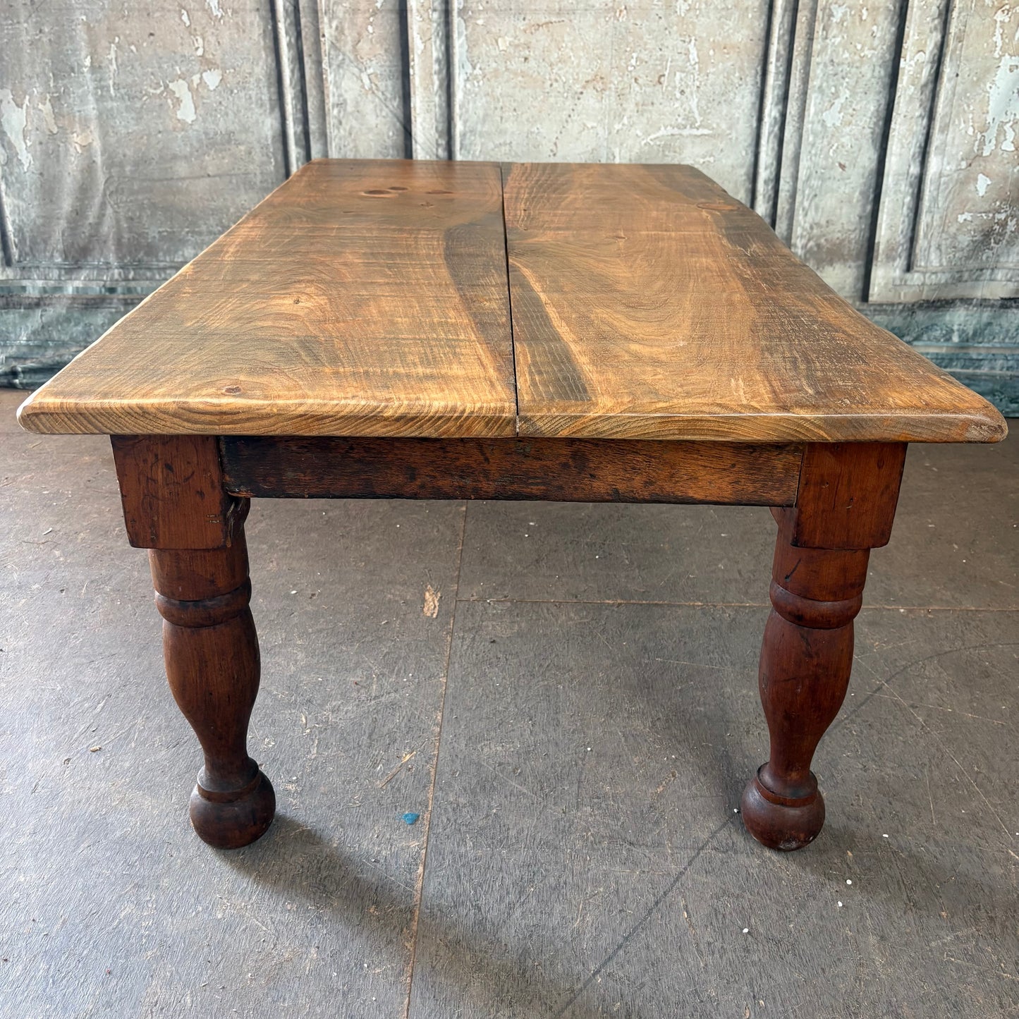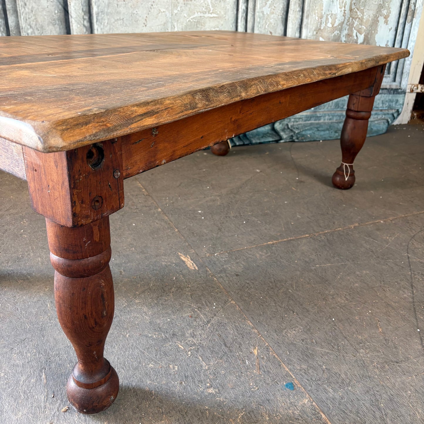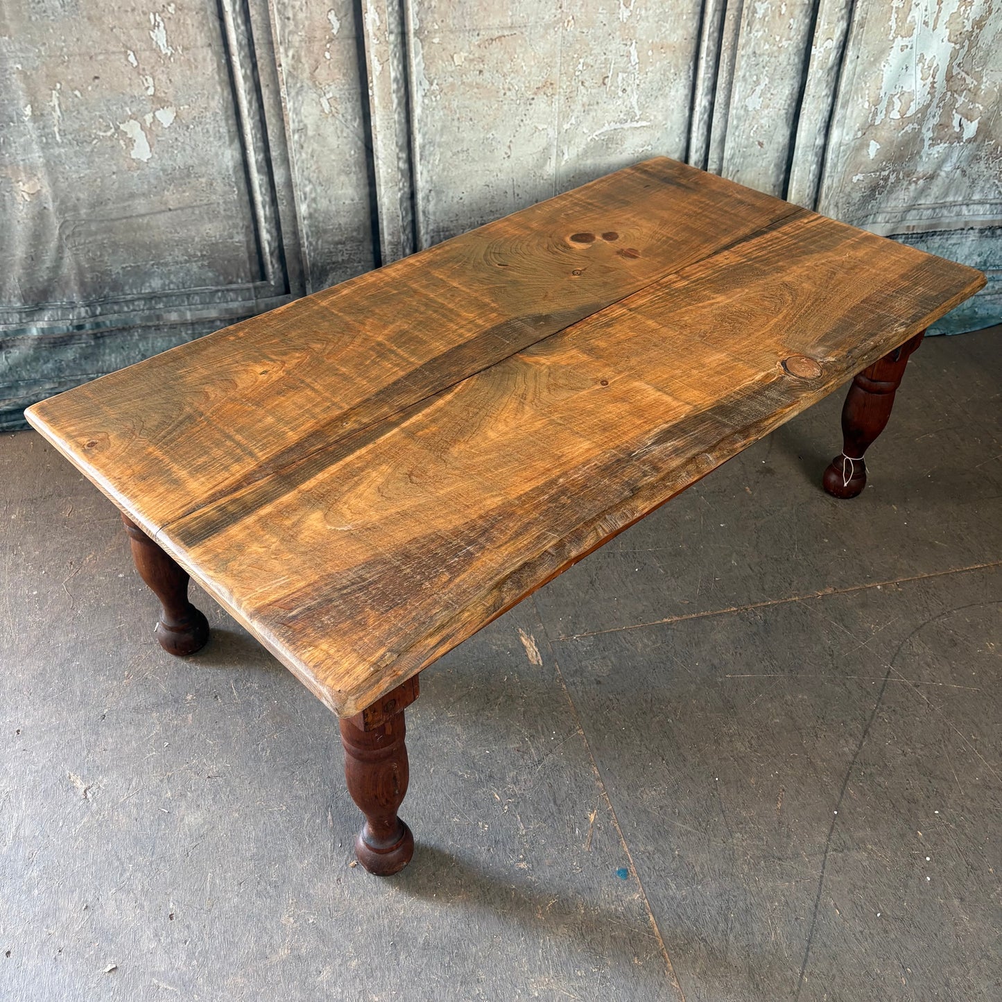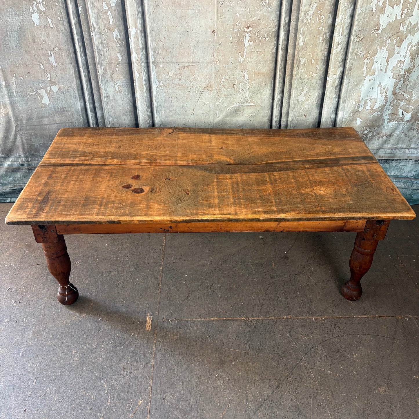 This incredibly cool coffee table was built by one of our local craftsmen using the pine frame of an 1800's rope bed! He added a slight live edge to give it a more natural feel and we absolutely love it!!!