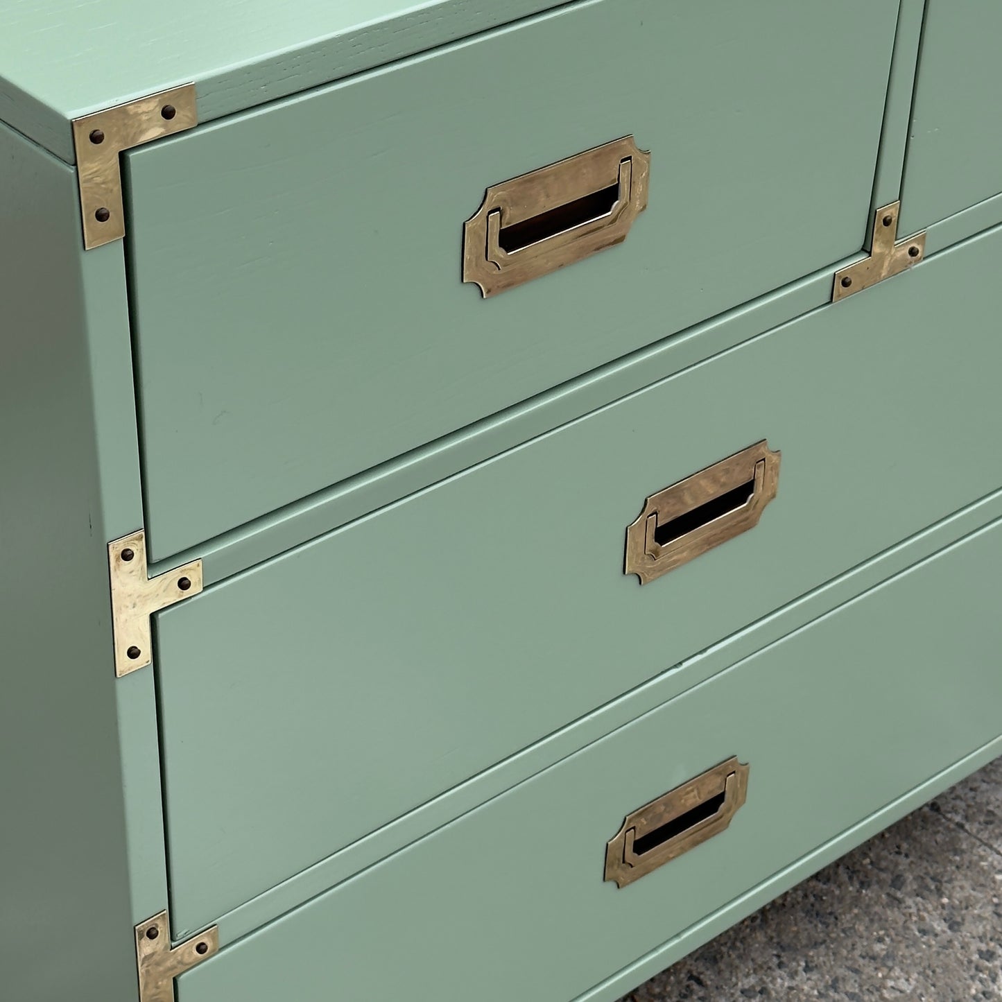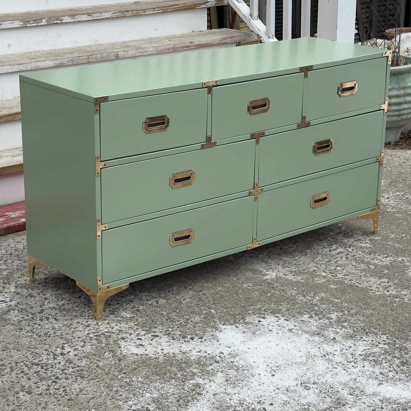 This stunning Bernhardt campaign dresser just arrived at the store with a fresh, new green lacquered finish, so pretty!